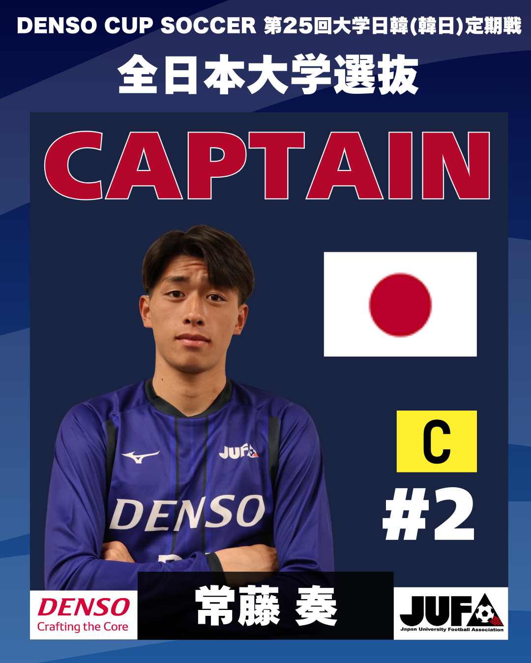 『DENSO CUP SOCCER 第25回大学日韓(韓日)定期戦』全日本大学選抜キャプテン決定のお知らせ